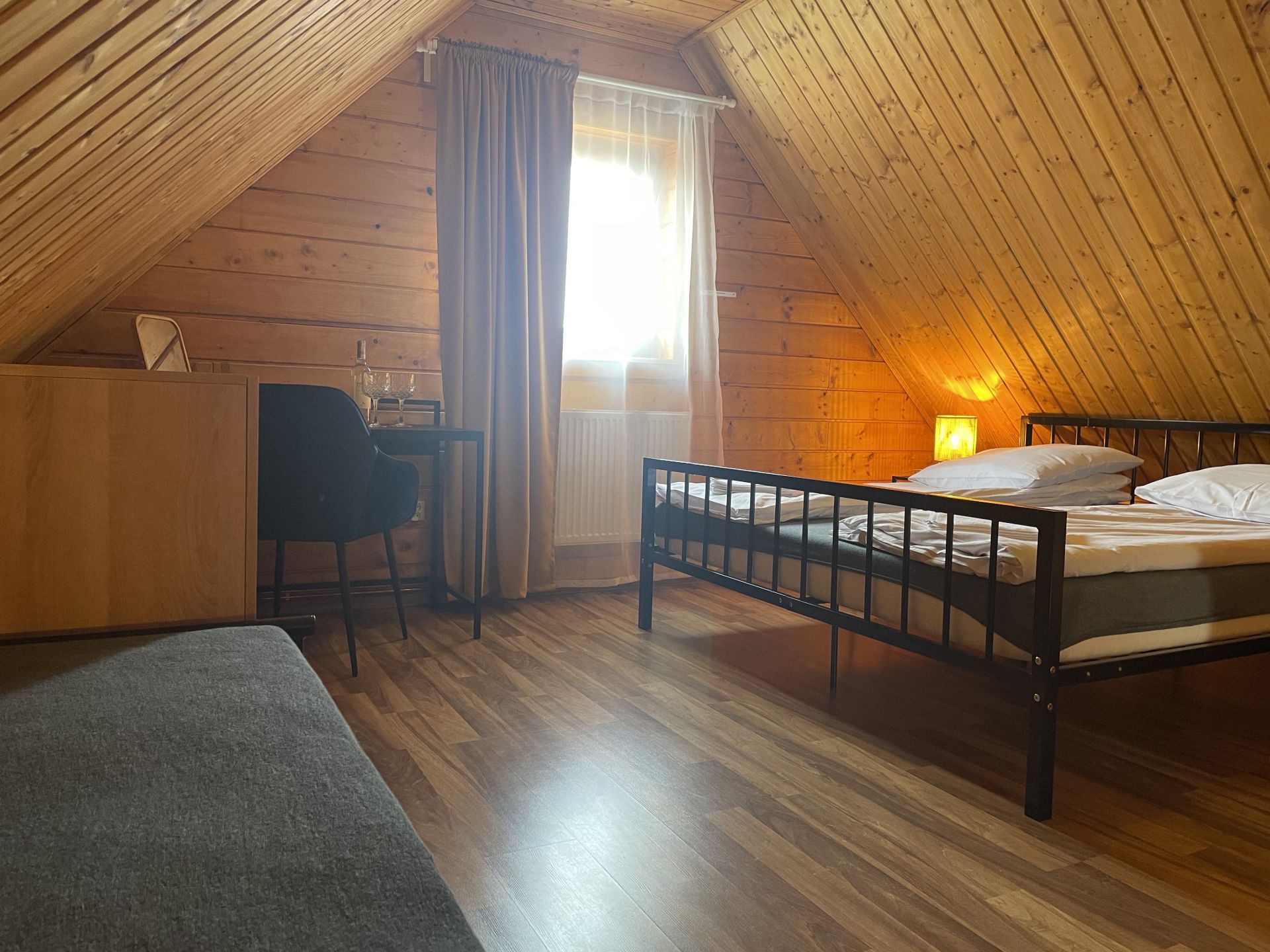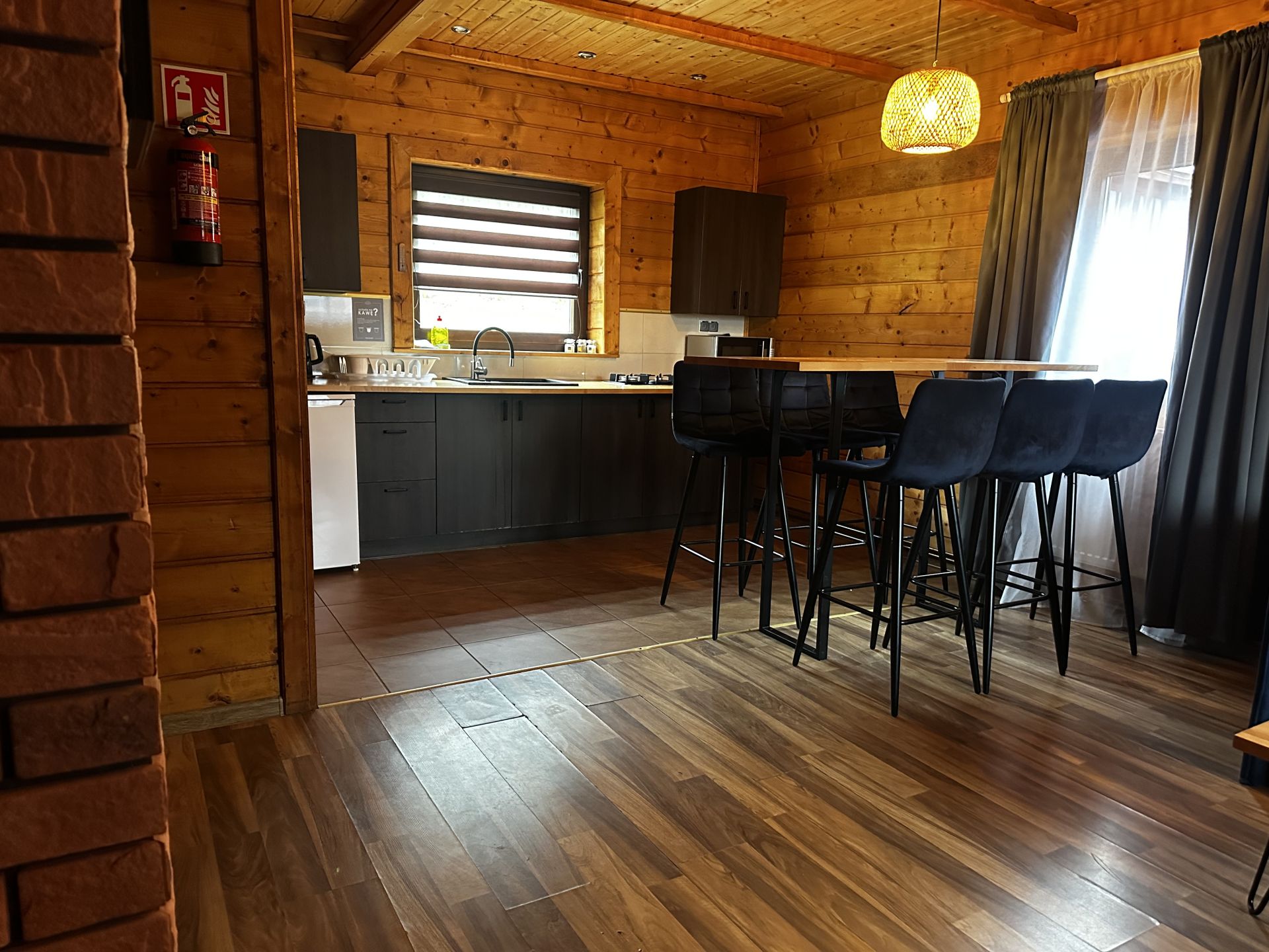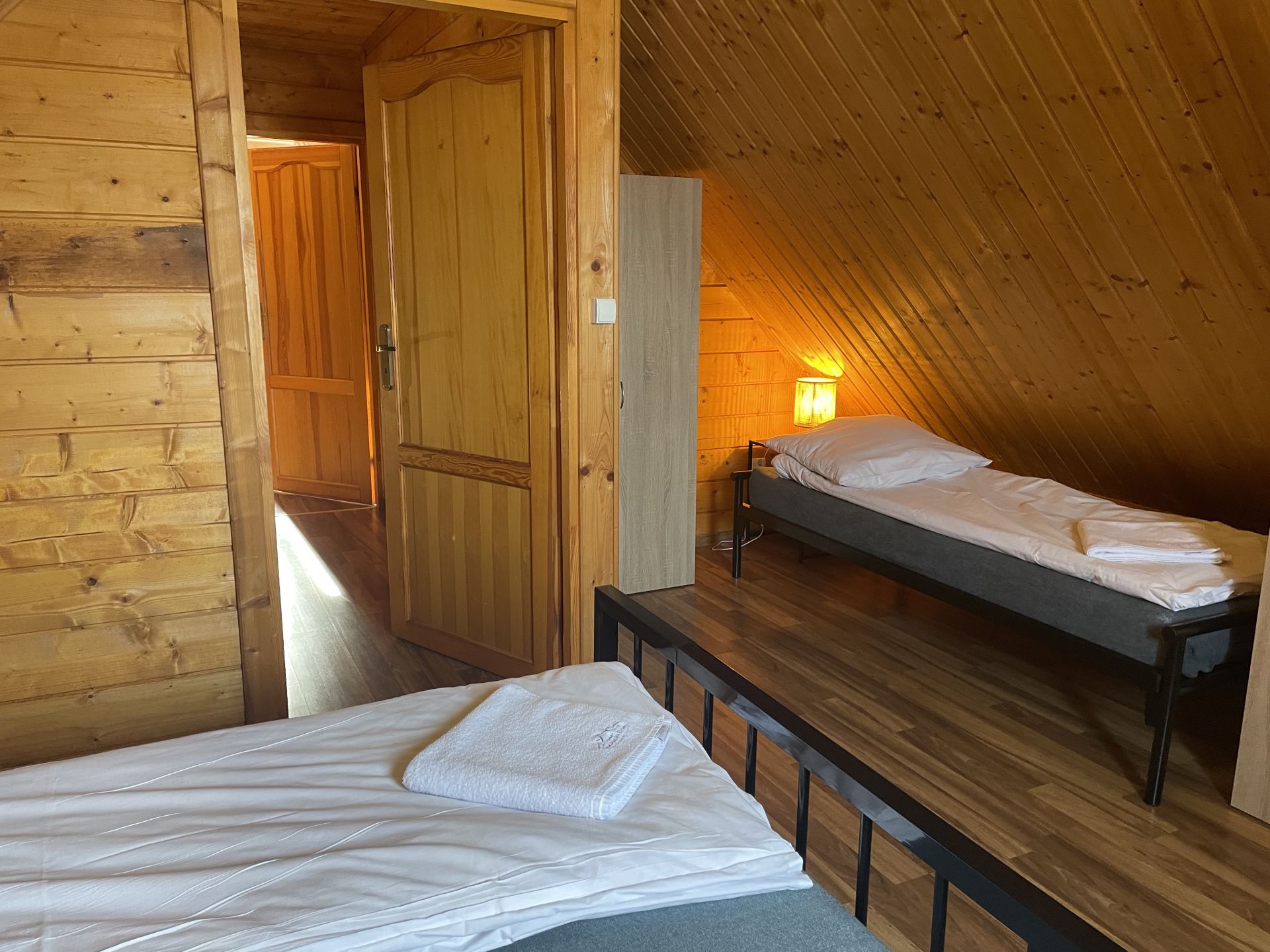 Osada Górski Potok oferuje 10 drewnianych domków całorocznych. W każdym domku znajduje się piętro sypialniane oraz cześć ogólnodostępna z salonem, jadalnią oraz aneksem kuchennym. W domkach możemy zmieścić maksymalnie do 8 osób.
