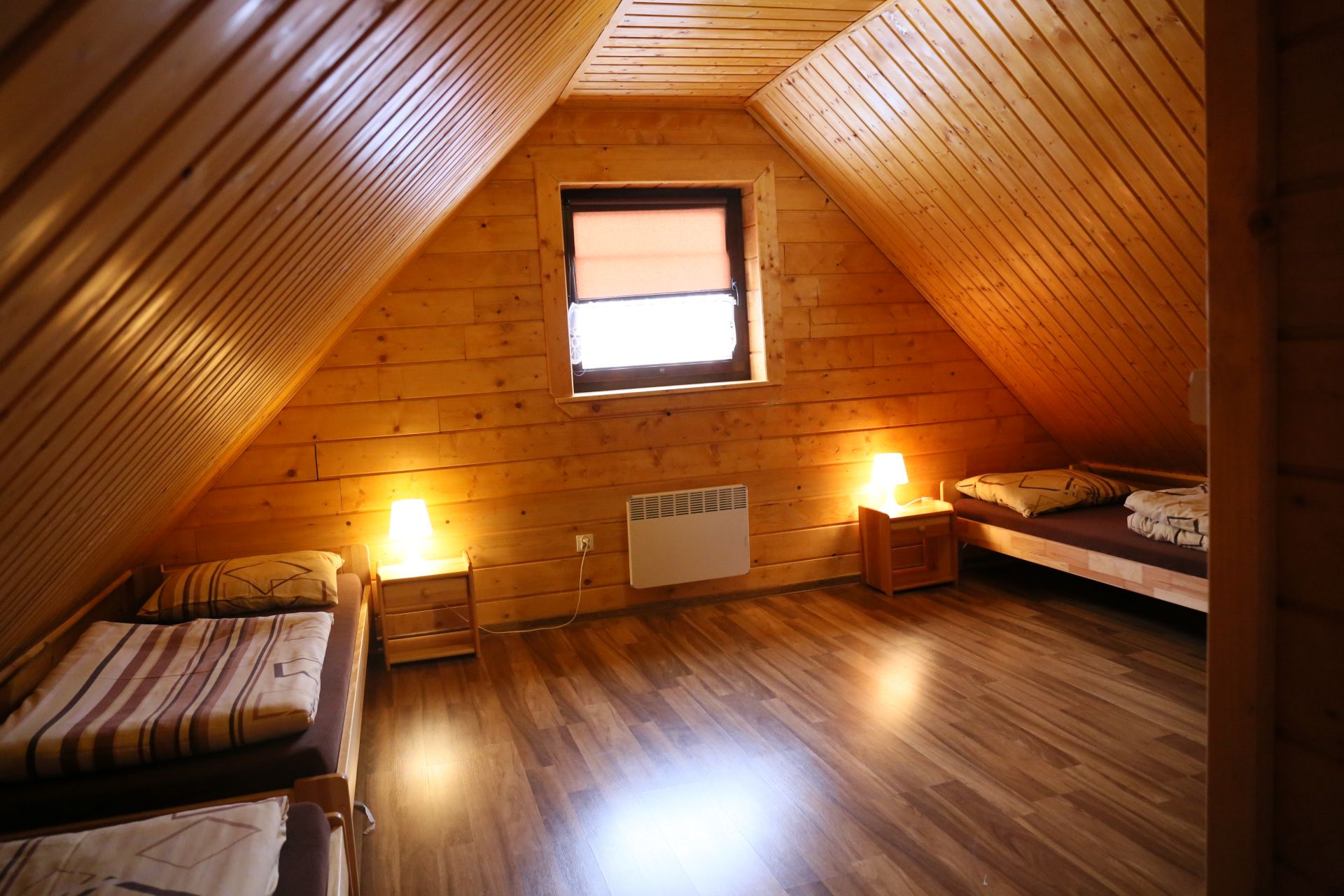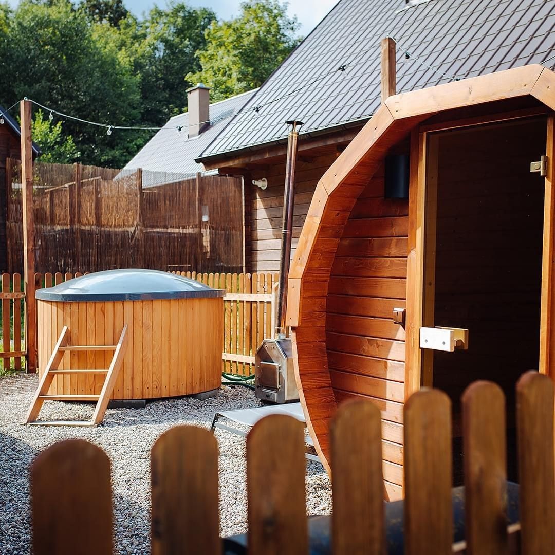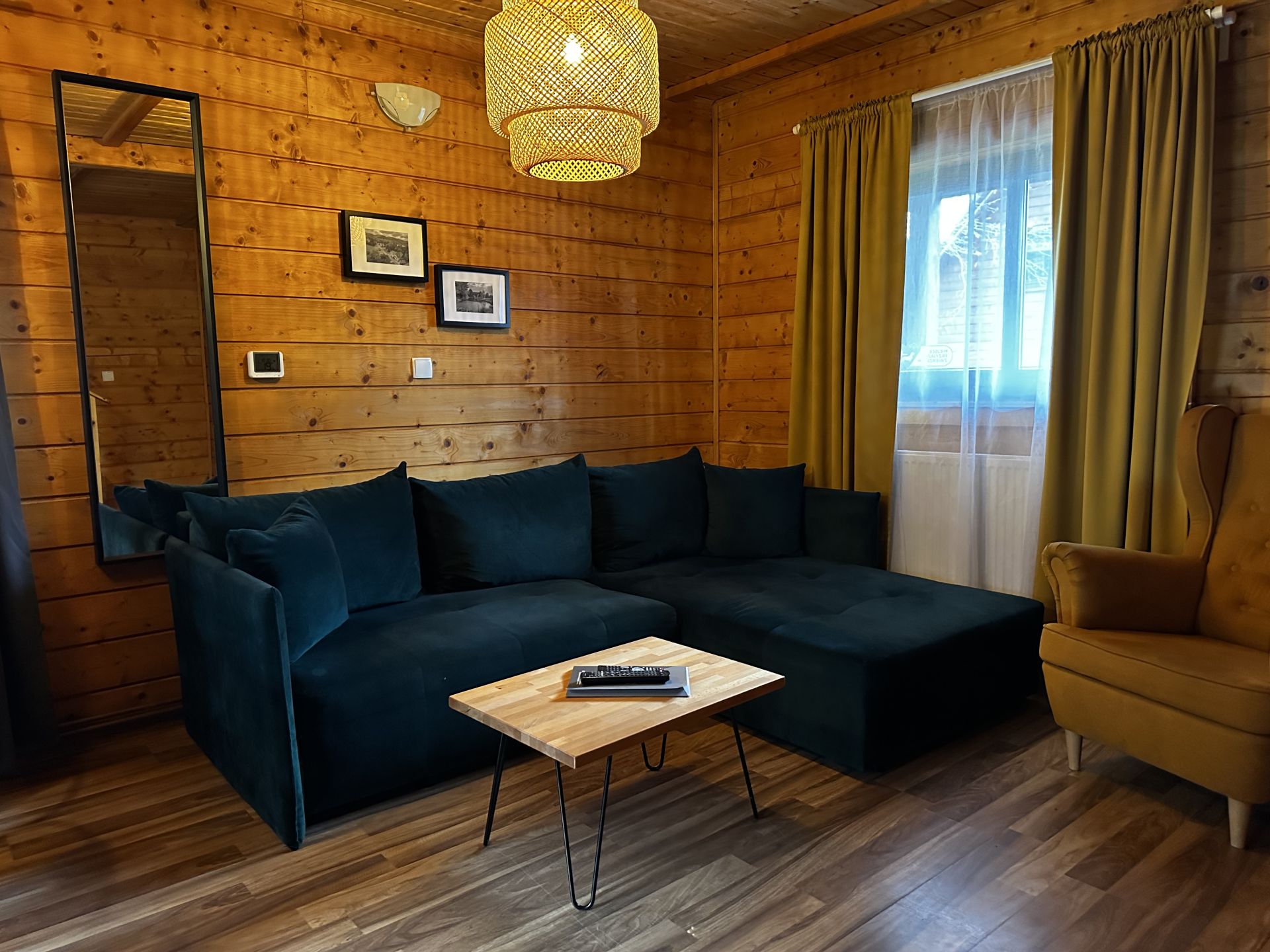 Osada Górski Potok oferuje 10 drewnianych domków całorocznych. W każdym domku znajduje się piętro sypialniane oraz cześć ogólnodostępna z salonem, jadalnią oraz aneksem kuchennym. W domkach możemy zmieścić maksymalnie do 8 osób.