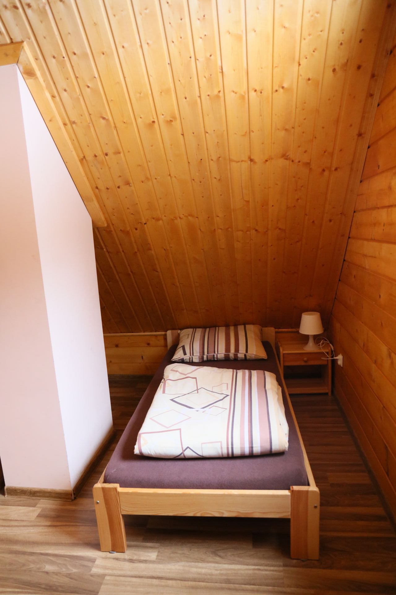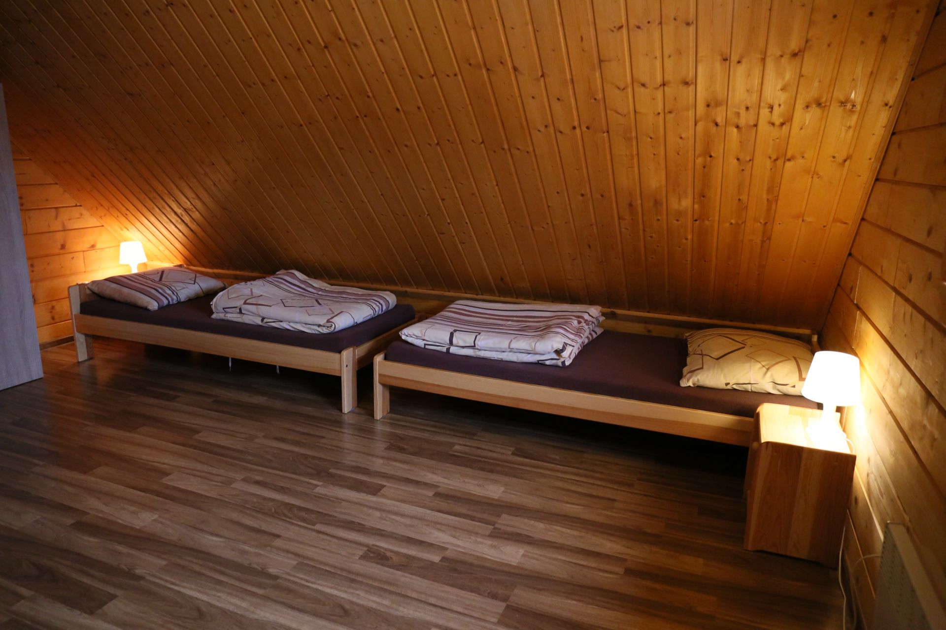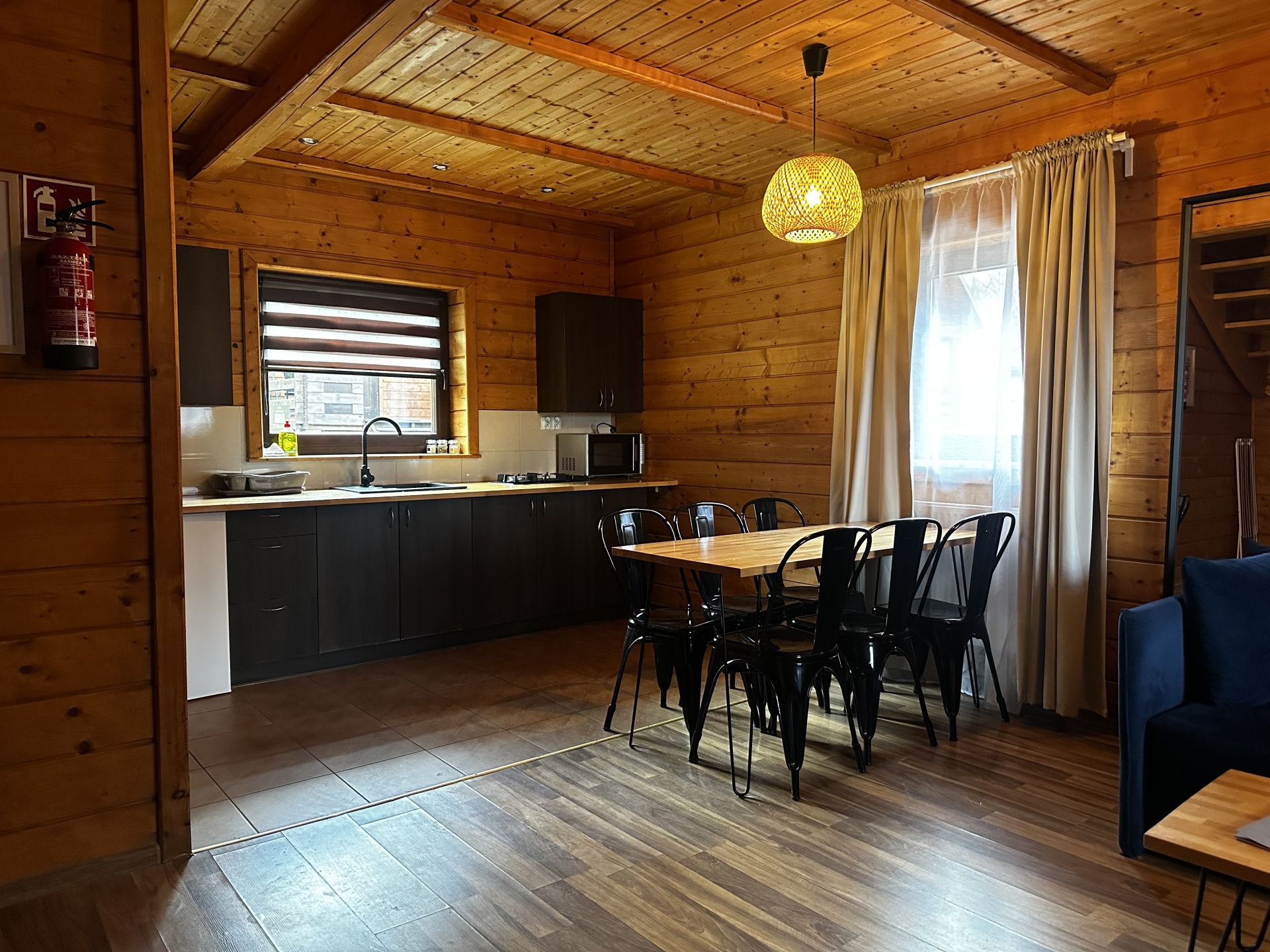 Osada Górski Potok oferuje 10 drewnianych domków całorocznych. W każdym domku znajduje się piętro sypialniane oraz cześć ogólnodostępna z salonem, jadalnią oraz aneksem kuchennym. W domkach możemy zmieścić maksymalnie do 8 osób.