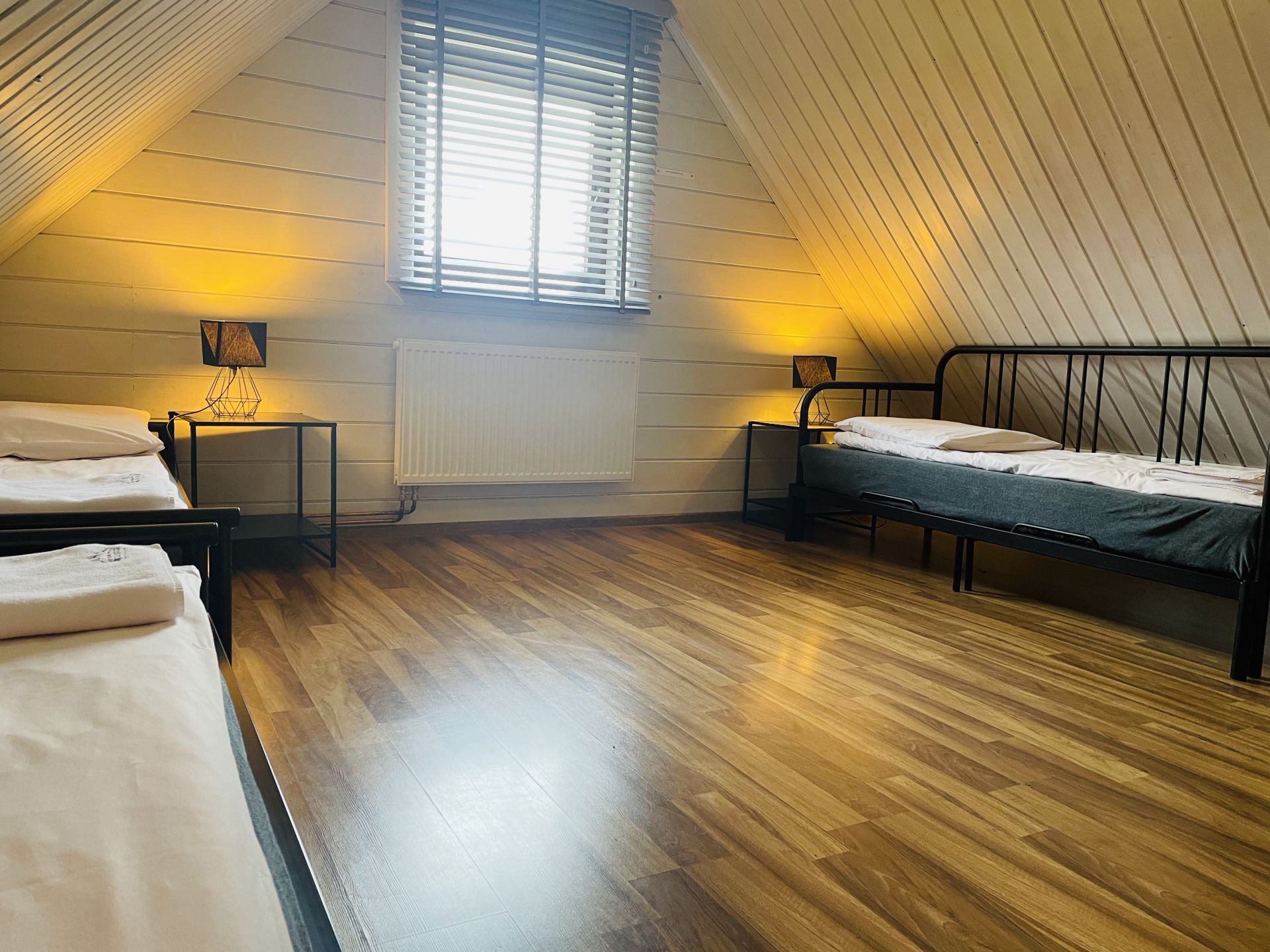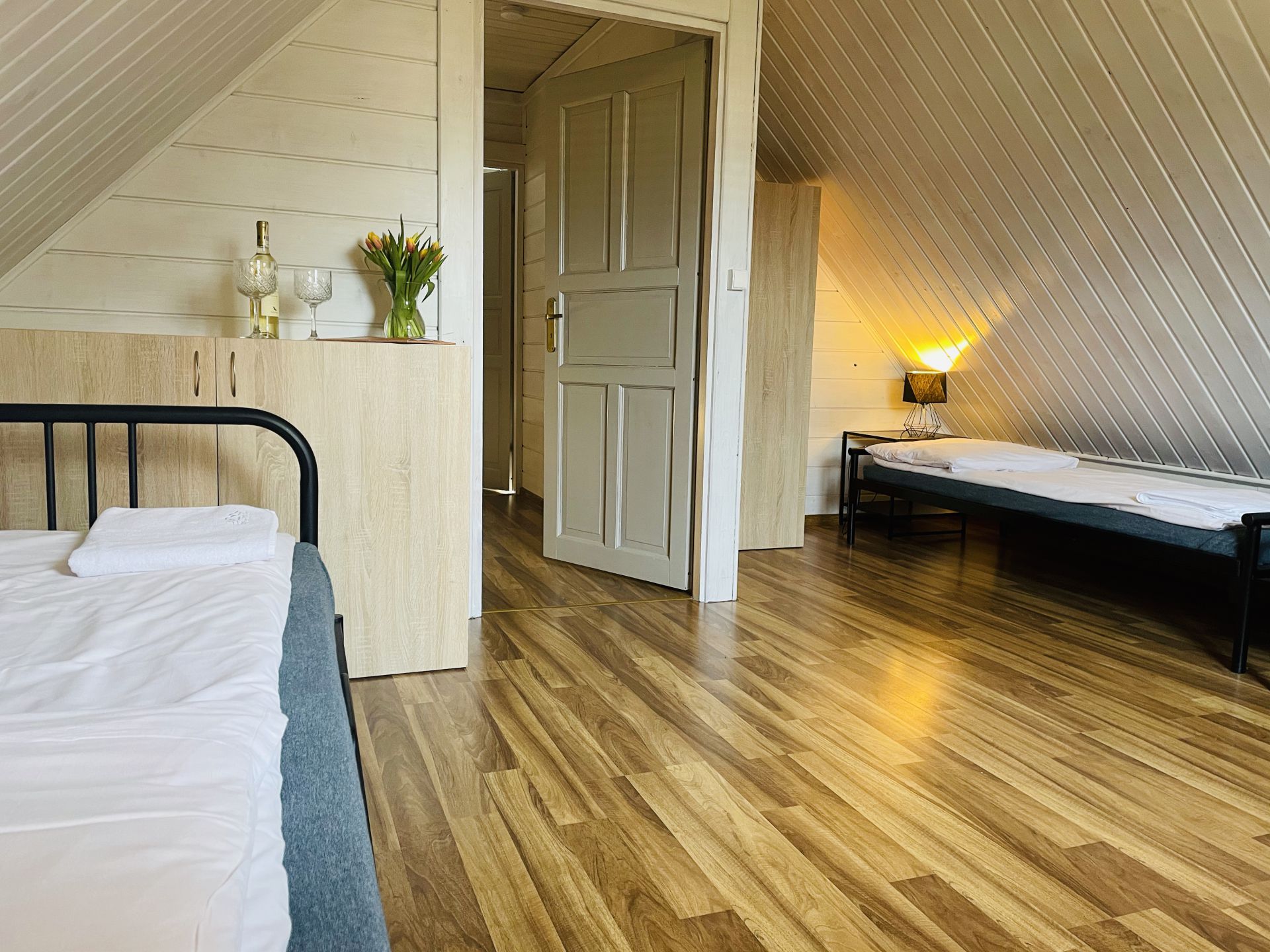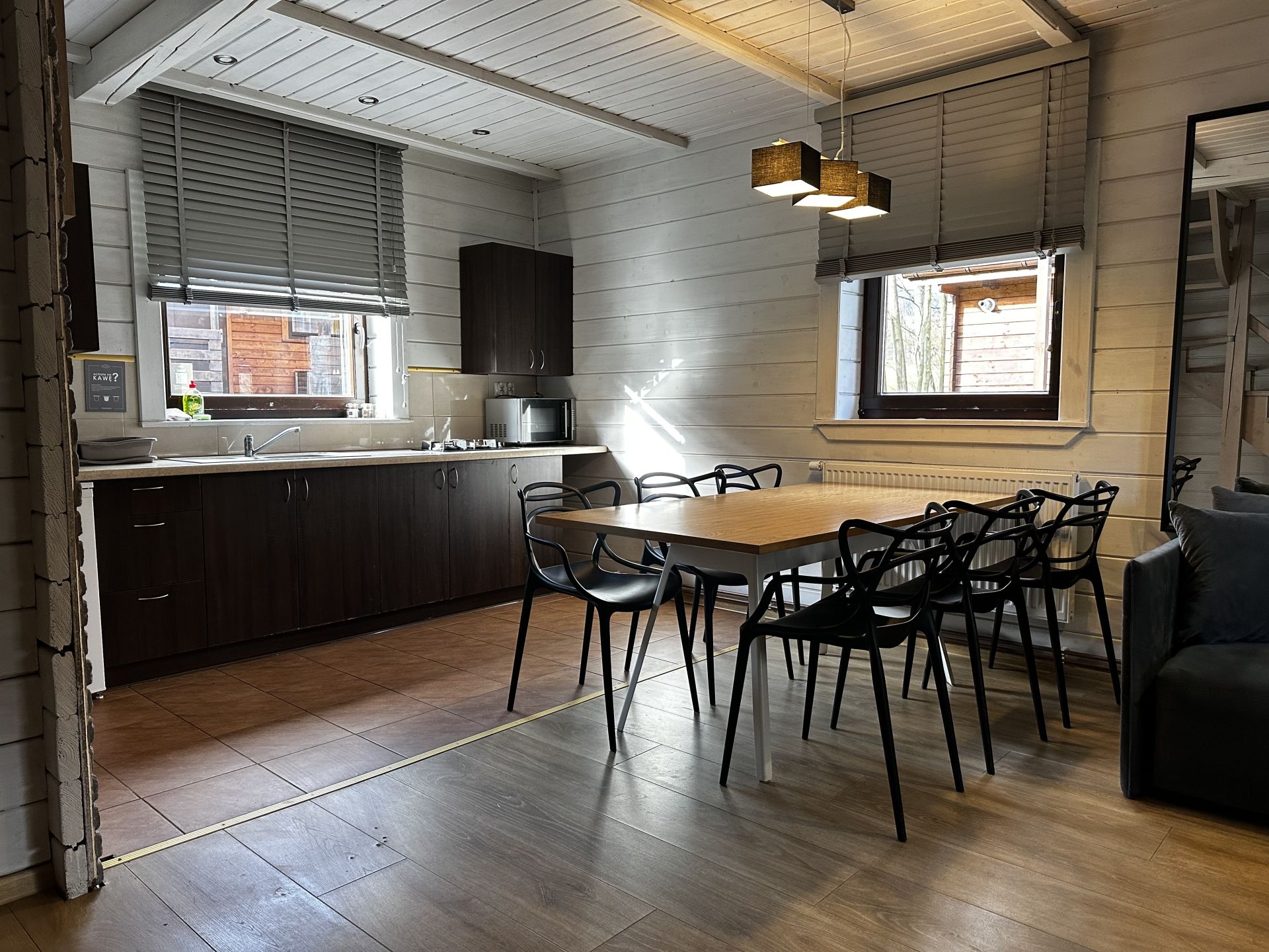 Osada Górski Potok oferuje 10 drewnianych domków całorocznych. W każdym domku znajduje się piętro sypialniane oraz cześć ogólnodostępna z salonem, jadalnią oraz aneksem kuchennym. W domkach możemy zmieścić maksymalnie do 8 osób.