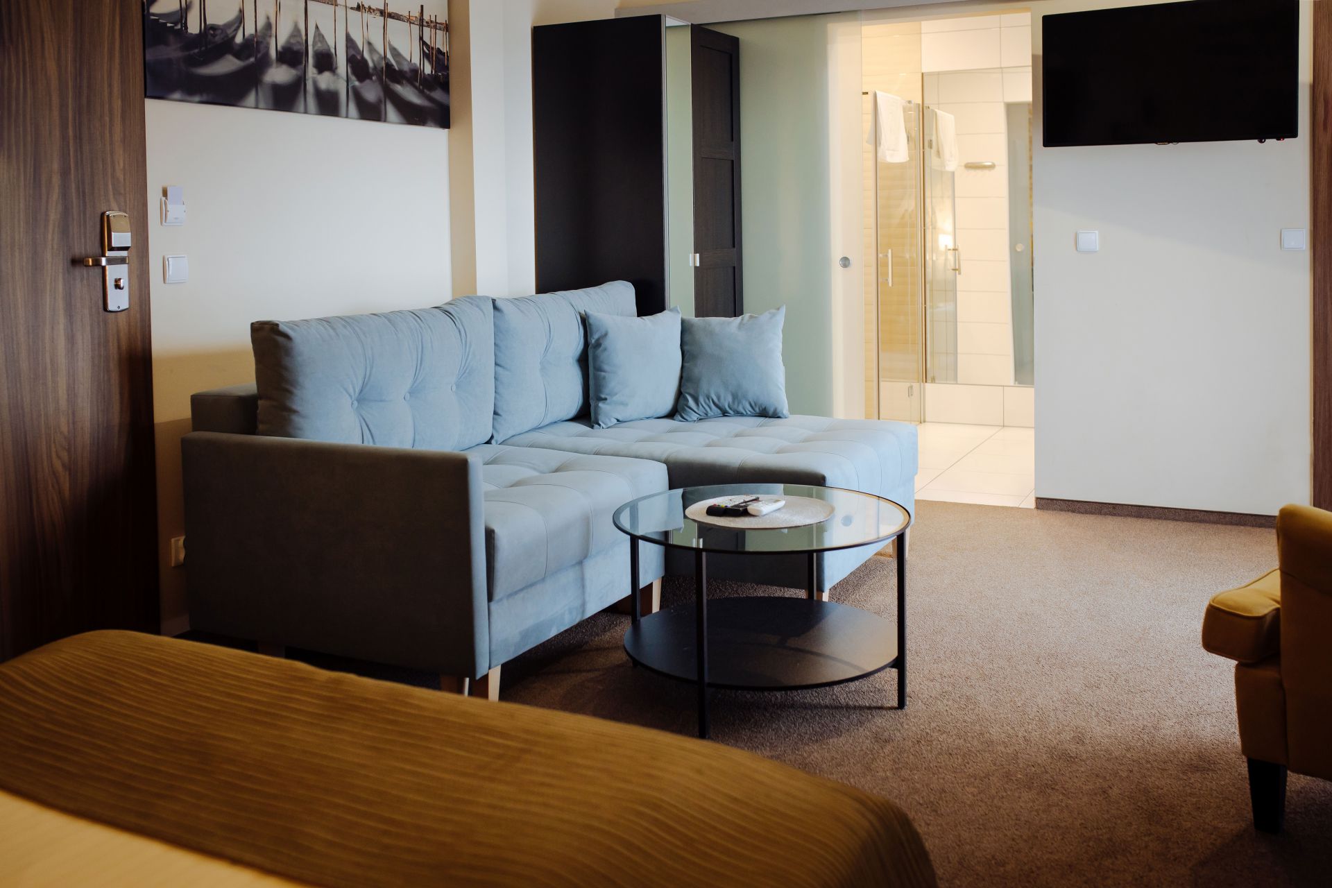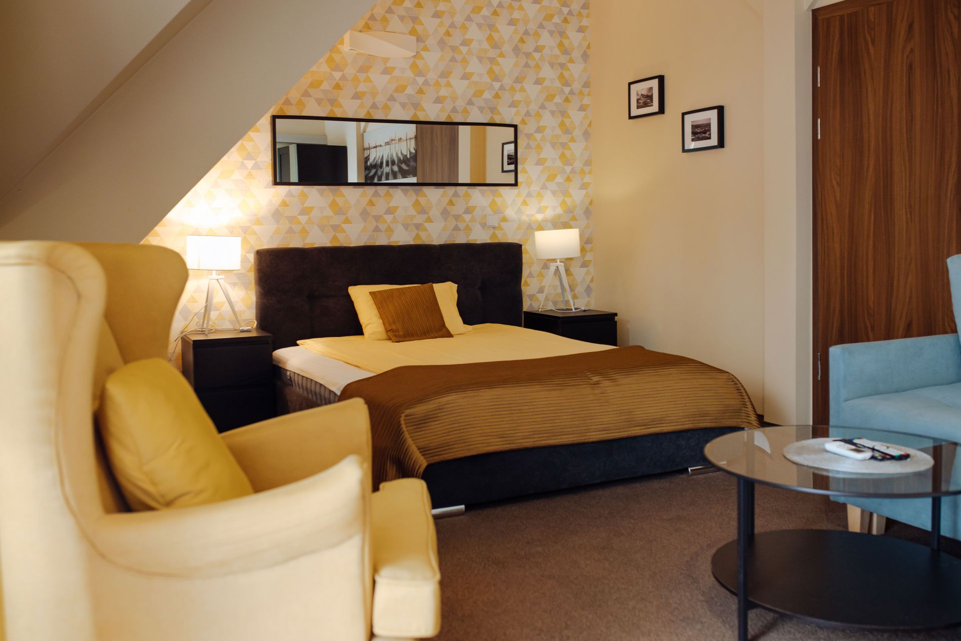 Nasze pokoje zostały wyposażone w nowoczesne łazienki oraz komfortowe łózka. Wszystkie posiadają klimatyzację, telewizor, mini lodówkę, biurko, szafę, komodę, szafki nocne, ręczniki, zestaw kosmetyków a także bezpłatny dostęp do internetu bezprzewodowego oraz parkingu.