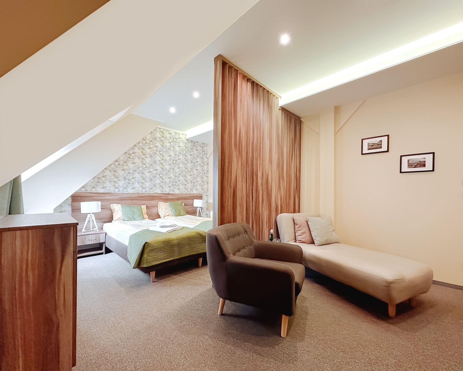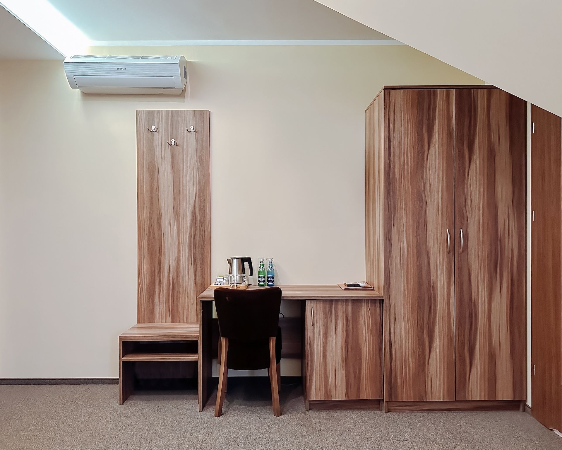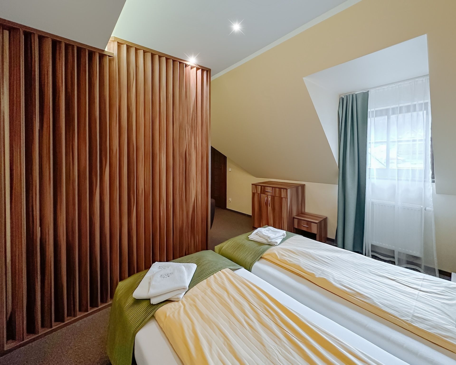 Nasze pokoje zostały wyposażone w nowoczesne łazienki oraz komfortowe łózka. Wszystkie posiadają klimatyzację, telewizor, mini lodówkę, biurko, szafę, komodę, szafki nocne, ręczniki, zestaw kosmetyków a także bezpłatny dostęp do internetu bezprzewodowego oraz parkingu.