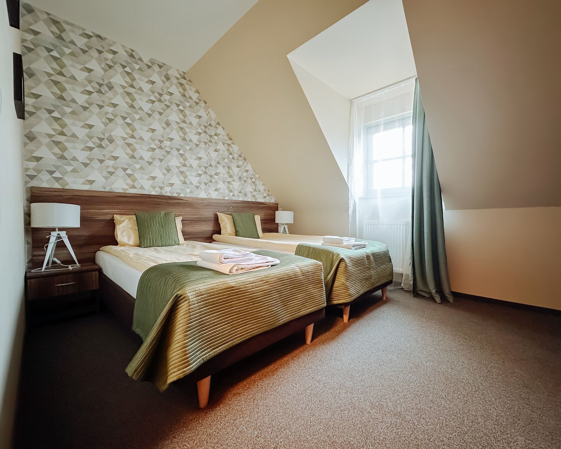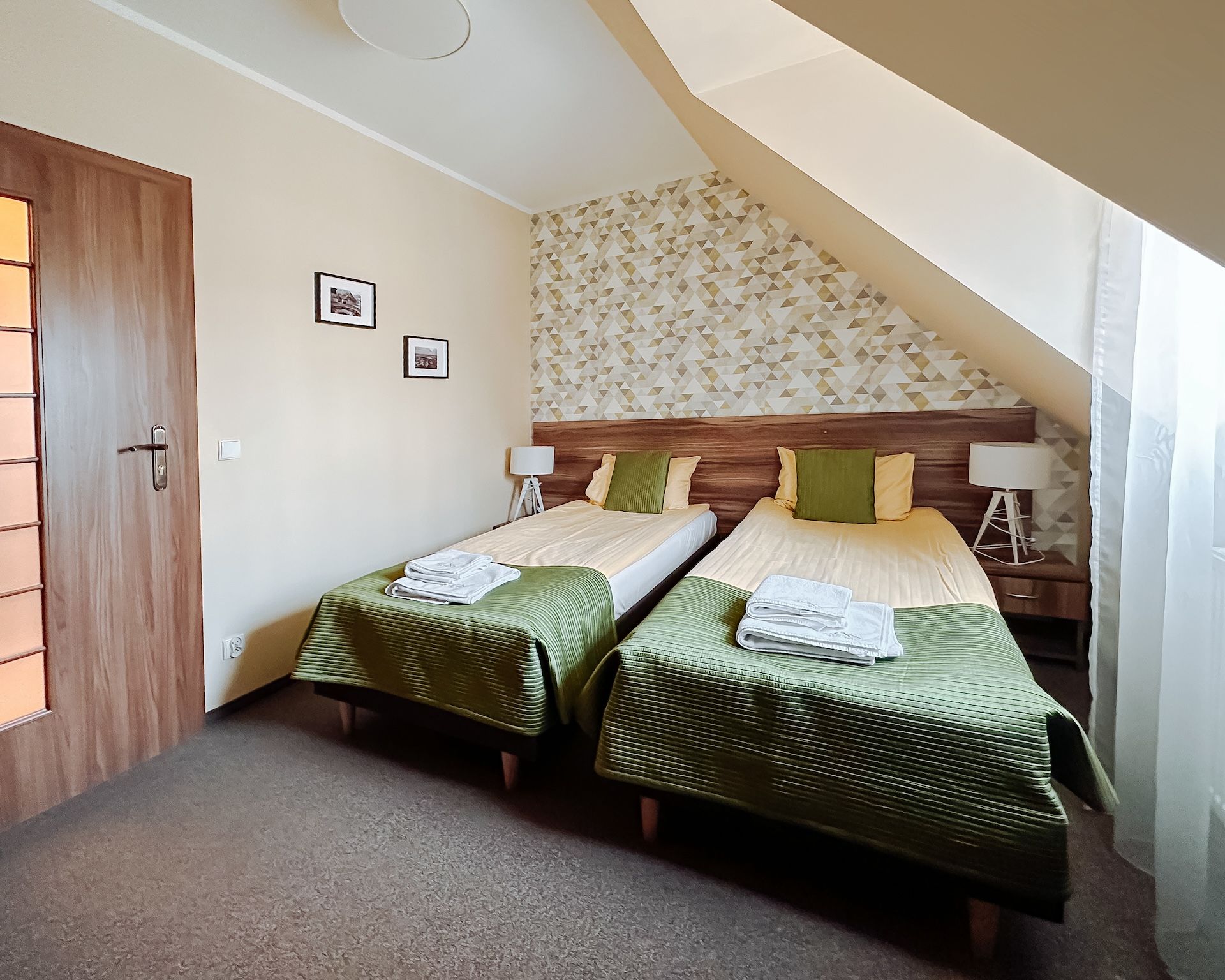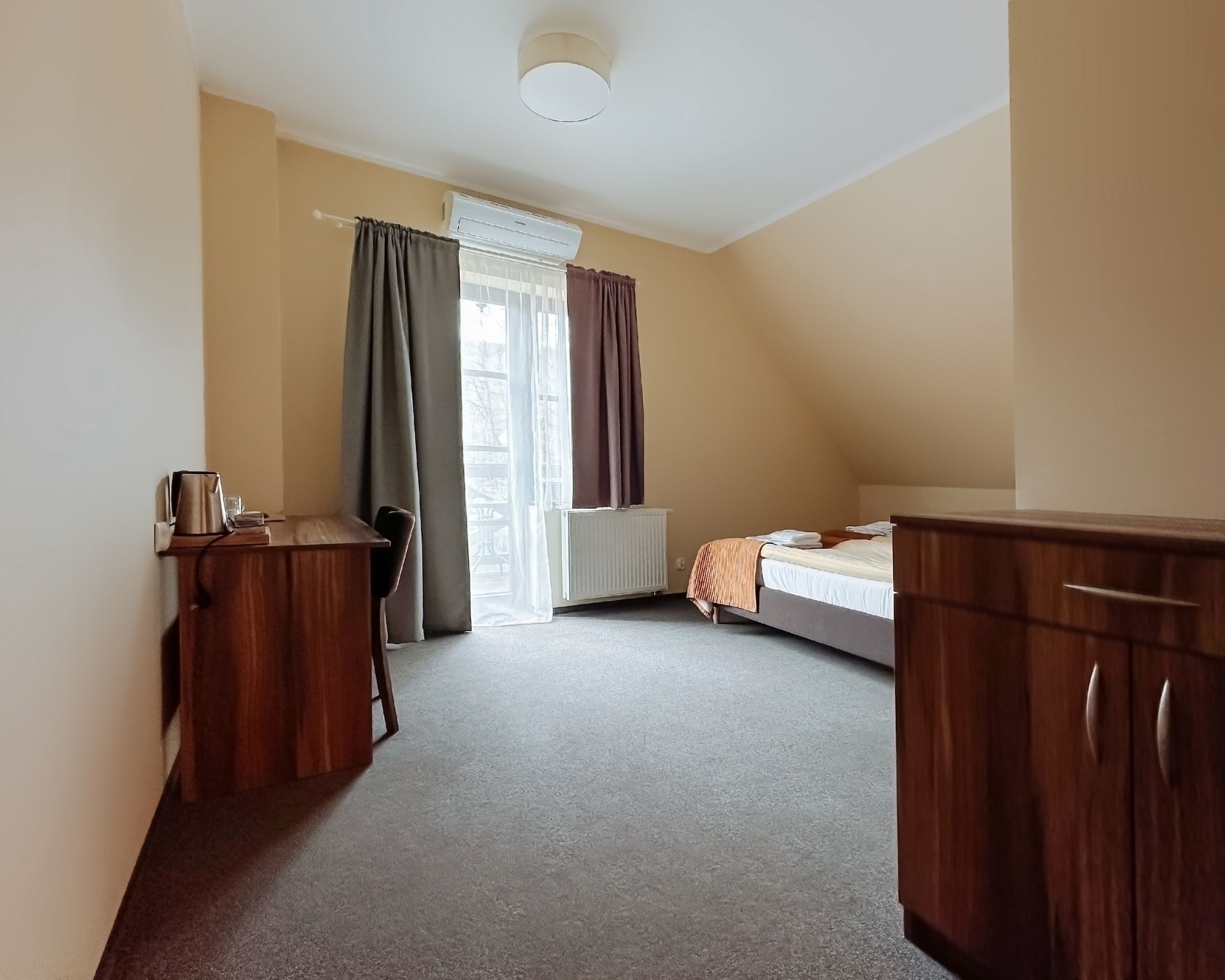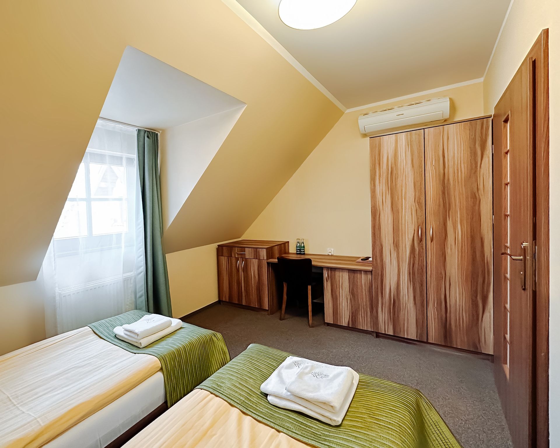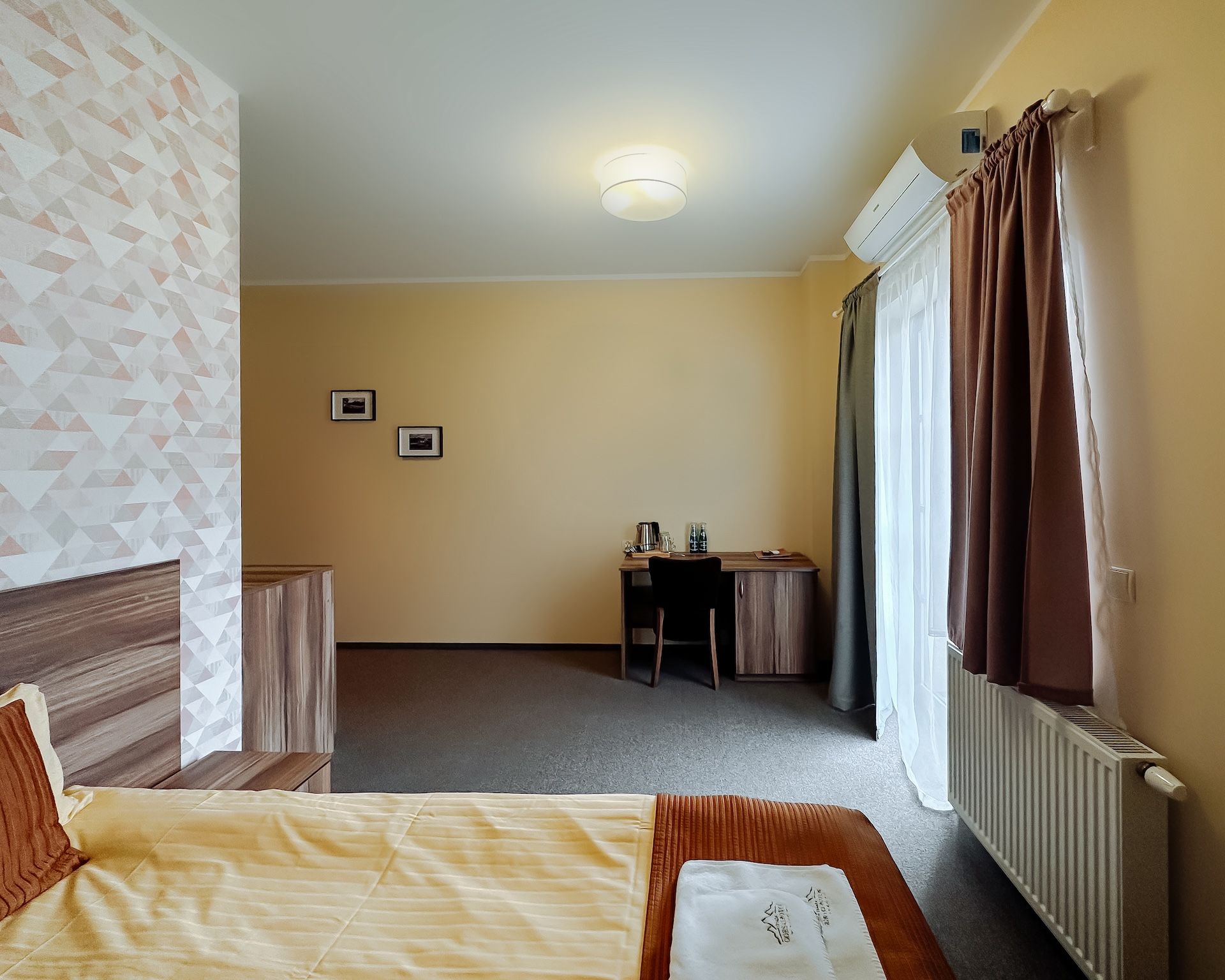 Nasze pokoje zostały wyposażone w nowoczesne łazienki oraz komfortowe łózka. Wszystkie posiadają klimatyzację, telewizor, mini lodówkę, biurko, szafę, komodę, szafki nocne, ręczniki, zestaw kosmetyków a także bezpłatny dostęp do internetu bezprzewodowego oraz parkingu.